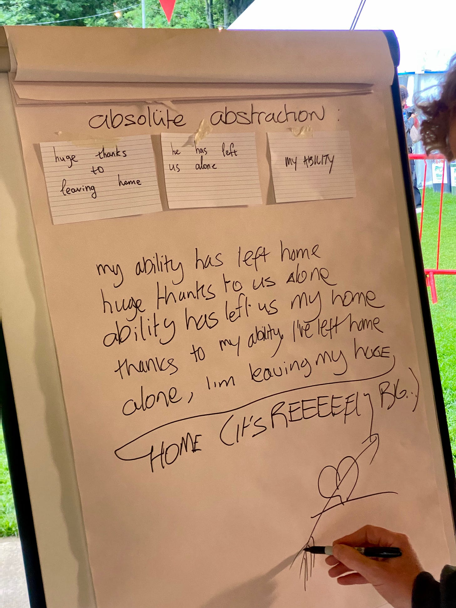 All poems were produced in collaboration with the public and attendees of the algorithm party at the 2024 International Literature Festival Dublin in Merrion Square Park on Sunday, May 26th.